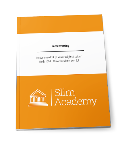 “Top samenvatting! Voor het eerst een samenvatting gekocht bij Slim Academy en ontzettend tevreden hierover. Duidelijke samenvatting die tot de kern komt en je goed voorbereid op het tentamen. Met de wekelijkse uitleg blijf je goed bij met de stof zodat je daarnaast ook goed de stof beheerst voor de werkgroep.”